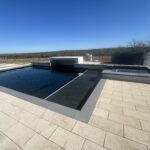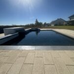 The Modern Grotto Pool is a striking blend of architectural design and luxurious resort-style relaxation. Clean lines, a dramatic raised wall, and a sleek integrated grotto space create a sophisticated focal point from every angle. Reflective dark interior tones give the water a deep, elegant finish, while the sun shelf transitions into sparkling blue water that captures light beautifully throughout the day.
