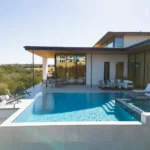 The Parismina pool is a striking modern infinity-edge design built for a hillside residence overlooking scenic Central Texas views. Its sleek geometric layout blends clean architectural lines with high-end finishes, creating a seamless transition between indoor and outdoor living. With the elevated structure, multi-tiered water features, and spa integration, this pool exemplifies sophisticated design and precision craftsmanship.